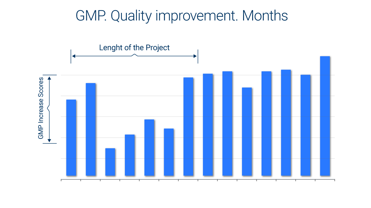 mplemented Quality management system GMP - Good Manufacturing Practices. Quality improved by over 35% as to System's scores.
