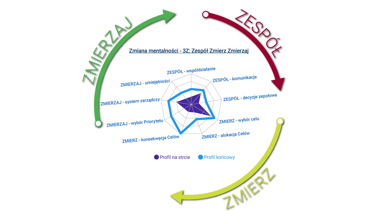 Wdrożony autorski System zmiany mentalności Zespół, Zmierz, Zmierzaj (powiększ obraz).