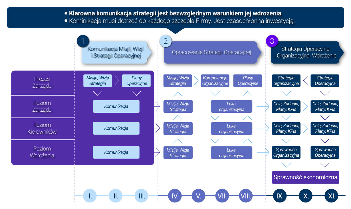 Został opracowany układ zintegrowanych Celów i Miernków dla monitorowania postępów we wdrożeniu zarówno Strategii operacyjnej jak i Strategii organizacyjnej. Dzieki temu nastapiło połączenie Celów i Mierników pomiędzy Poziomem Zarządu a Poziomem Kierowników, a także Poziomem wdrożenia.