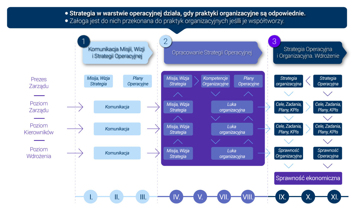 Dzięki temu uruchomiony został proces zamykania Luki organizacynej. Proces dotyczy konkretnych kompetencji i praktyk organizacyjnych, pożądanych dla uzyskania odpowiednich celów operacyjnych.