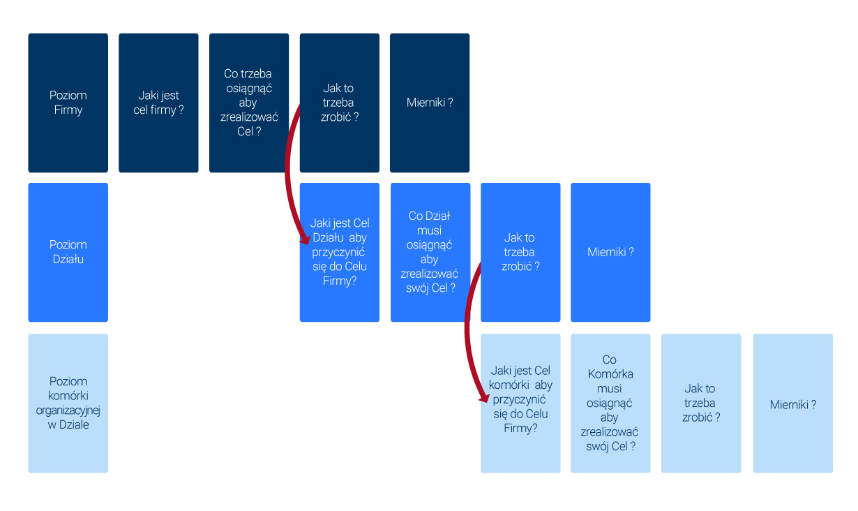 Podczas kaskadowania została zastosowana metodyka: Cele Zadania Strategie Mierniki.